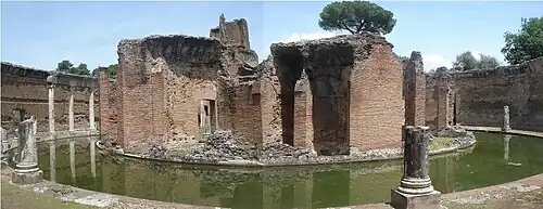 Interprétation : On s'est longtemps posé des questions sur la signification de cet endroit mystérieux qui constitue un hommage personnel d'Hadrien au défunt Antinoüs. Ce bassin qui allie les cultures latines et égyptiennes représenterait la mer Méditerranée qui de Rome aboutit à l'Égypte, et le petit bassin qui vient se greffer au grand bassin serait à l'image du delta du Nil. Selon une autre interprétation, ce lieu participerait du culte impérial, Hadrien s’y mettant en scène en Sérapis lors des banquets d’apparat[2].