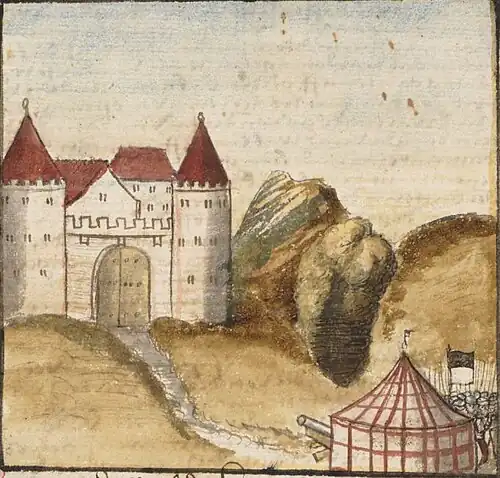 Vers la fin de l’année 1447, l'histoire de Villarsel est agitée. Le , Fribourg déclare la guerre au duc de Savoie, Louis 1er, lié à la famille de Challant. Le , 600 à 700 hommes quittent la ville de Fribourg et font mouvement vers le Gibloux pour saisir du bétail et du fourrage. Ils s’emparent du Château de Villarsel-le-Gibloux, le pillent et y mettent le feu. Le châtelain est capturé, ainsi que ses hommes, tandis qu'on délivre 36 prisonniers[2]. La troupe de pillards rentre à Fribourg quelques jours plus tard, chargée de butin. Puis les Fribourgeois attaquent château de Montagny, sans arriver cependant à faire capituler la garnison. Ils y incendièrent l’église et le bourg, et le feu est mis aussi à de nombreux villages sujets de la Savoie : Ponthaux, Chandon, Villarimboud, Torny, Noréaz, Seedorf.