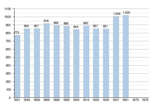 - Sources : INS, Rem. : 1831 jusqu'en 1970 = recensements, 1976 = nombre d'habitants au 31 décembre.