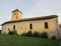 Elle appartenait lors de sa fondation à l'abbaye de Gorze. L'église est faite de pierres de Jaumont jaunes, partiellement en blocs, partiellement en moellons. La construction était crépie au-dehors comme à l'intérieur. Elle se compose d'une salle rectangulaire supportant une tour-clocher intégrée, un chœur rectangulaire assez court et une abside semi-circulaire. Elle se caractérise par une assise de sa tour-clocher intégrée, à l'est de la nef et non pas à l'ouest, comme il est habituel. Entre des piliers et des petits poteaux d'angle surmontés de petits chapiteaux cubiques, se trouvent deux espaces latéraux rectangulaires. Trois arcs permettent d'augmenter les deux espaces latéraux. Partant des deux piliers médians, des arcs se prolongent jusqu'au mur de la nef et entrent sans consoles dans le mur. Ces espaces avaient primitivement un plafond plat ; aujourd'hui, les deux espaces latéraux sont couverts par des voûtes sur une croisée d'ogives de style gothique tardif. Sur l'espace médian s'élève une tour refaite au XVIIIe siècle. Les piliers sont richement décorés : sur un socle repose un pilier avec petites colonnes latérales. Quatre petits chapiteaux cubiques et les piliers portent un renfort plat couvert de décors uniques : plaque, perles, platelet, gorge et petite gorge. En outre, la partie supérieure est décorée avec des ornements entaillés en forme d'étoile et de cercles. Les piliers dans les murs latéraux présentent des rebords profilés : sous les plus élevés, la plaque décorée avec des triangles, on voit une petite pente, un renflement, une plaquette, une gorge et un dernier petit creux. L'accès à la salle se faisait à l'époque romane par le portail nord fermé aujourd'hui. Le tympan montre des arcs gravés. Aujourd'hui, un portail baroque percé dans le mur ouest de la nef reprend l'ancienne fonction du portail nord. L'éclairage original venait des petites fenêtres en plein cintre : un guichet est toujours présent dans le mur sud.