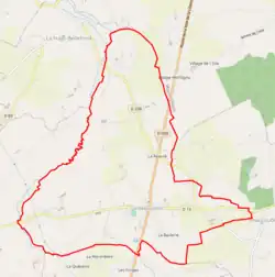 Les principaux lieux-dits sont, du nord-ouest à l'ouest, dans le sens horaire, le Hamel Bonté, le Pesron, la Jugonnière, la Métairie, la Petite Métairie, le Moulin de la Jugonnière, la Vallée (au nord), la Pointe, la Bauderie, la Réauté, le Bourg, la Poterie, les Brûlés (à l'est), Loiselière, la Baslerie, la Tournerie (au sud), la Vaucelle, le Montesser, le Pont (à l'ouest), la Bretonnière et la Rouelle[4].