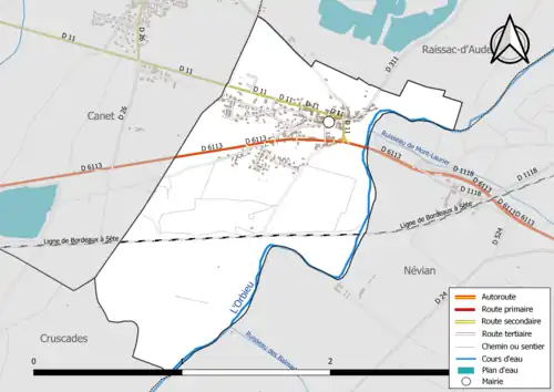 Les communes limitrophes sont Canet, Cruscades, Névian et Raissac-d'Aude.