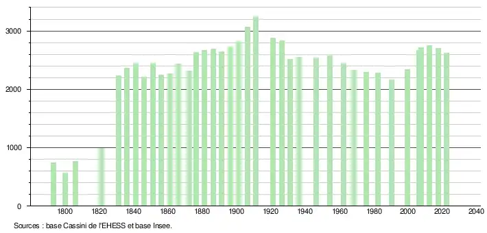2 615 hab. (2022 en évolution de −3,9 % par rapport à 2016)
