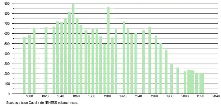 - ↑ Fiches Insee - Populations de référence de la commune pour les années 2006, 2007, 2008, 2009, 2010, 2011, 2012, 2013, 2014, 2015, 2016, 2017, 2018, 2019, 2020, 2021 et 2022.