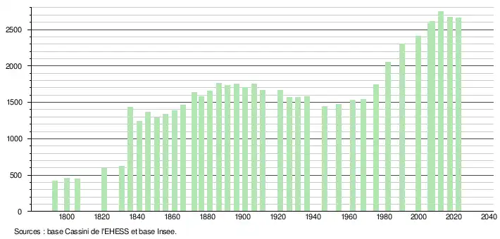 - ↑ Fiches Insee - Populations de référence de la commune pour les années 2006, 2007, 2008, 2009, 2010, 2011, 2012, 2013, 2014, 2015, 2016, 2017, 2018, 2019, 2020, 2021 et 2022.