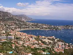 Séparée de Nice dont elle est limitrophe par le mont Boron, le mont Alban et le mont Vinaigrier et distante d’environ 10 km de Monaco, la ville s’étale en gradin sur les flancs de la rade de Villefranche, un des mouillages naturels les plus profonds de la Méditerranée occidentale.