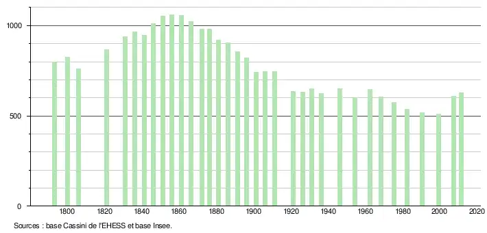 (Sources : Ldh/EHESS/Cassini jusqu'en 1999[8] puis Insee à partir de 2006[9].)