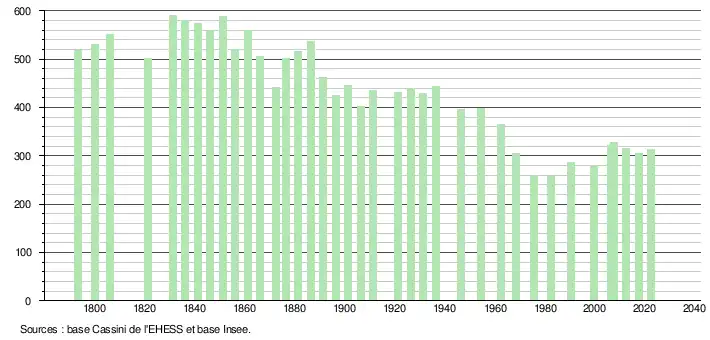 - ↑ Population municipale de référence en vigueur au 1er janvier 2025, millésimée 2022, définie dans les limites territoriales en vigueur au 1er janvier 2024, date de référence statistique : 1er janvier 2022.