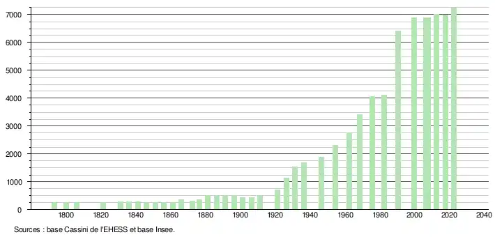 - ↑ Fiches Insee - Populations de référence de la commune pour les années 2006, 2007, 2008, 2009, 2010, 2011, 2012, 2013, 2014, 2015, 2016, 2017, 2018, 2019, 2020, 2021 et 2022.