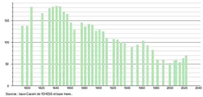 - ↑ Population municipale de référence en vigueur au 1er janvier 2025, millésimée 2022, définie dans les limites territoriales en vigueur au 1er janvier 2024, date de référence statistique : 1er janvier 2022.