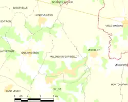 Le nom de la localité est mentionné sous les formes Villeneufve en 1656[37] ; Villeneuve sur Bellot en 1793[38].