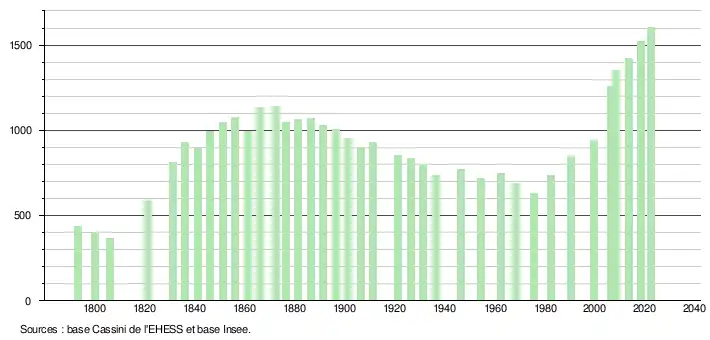 - ↑ Fiches Insee - Populations de référence de la commune pour les années 2006, 2007, 2008, 2009, 2010, 2011, 2012, 2013, 2014, 2015, 2016, 2017, 2018, 2019, 2020, 2021 et 2022.