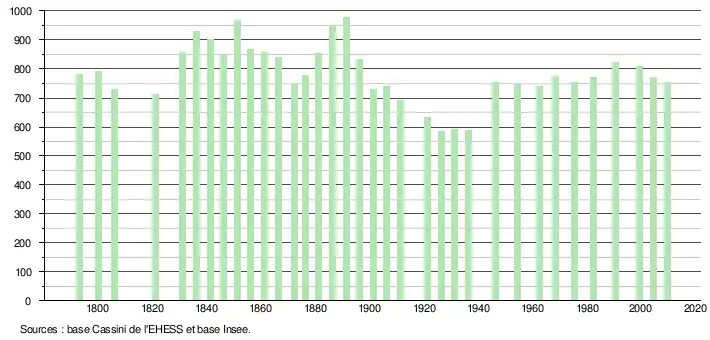 Le maximum de la population a été atteint en 1891 avec 977 habitants.