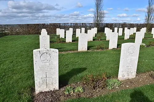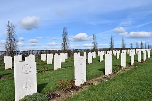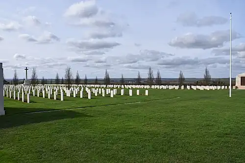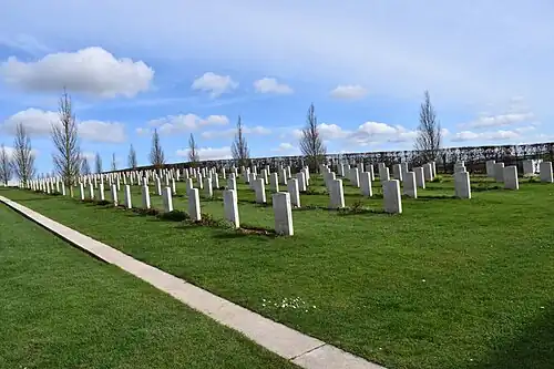 Aujourd'hui, 2 150 militaires du Commonwealth de la Première Guerre mondiale sont enterrés ou commémorés dans ce cimetière, dont 609 ne sont pas identifiés