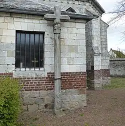 - La croix de grès, près du mur sud de la sacristie de l'église. Cette croix fait l'objet d'une inscription au titre des monuments historiques depuis le [32].