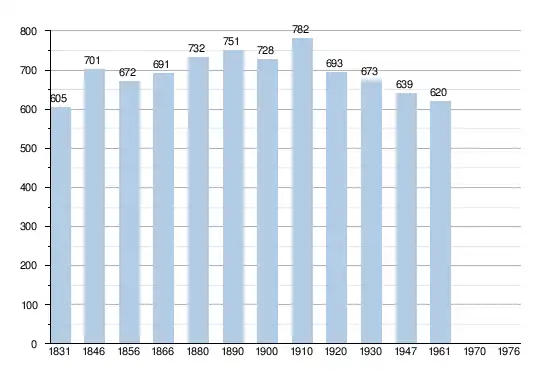 - Sources:INS, Rem:1831 jusqu'en 1970=recensements, 1976= nombre d'habitants au 31 décembre