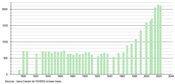 - ↑ Fiches Insee - Populations de référence de la commune pour les années 2006, 2007, 2008, 2009, 2010, 2011, 2012, 2013, 2014, 2015, 2016, 2017, 2018, 2019, 2020, 2021 et 2022.