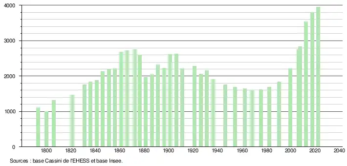 - ↑ Population municipale de référence en vigueur au 1er janvier 2025, millésimée 2022, définie dans les limites territoriales en vigueur au 1er janvier 2024, date de référence statistique : 1er janvier 2022.