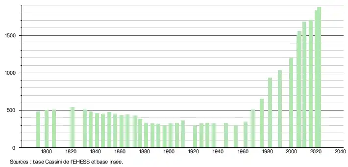 - ↑ Fiches Insee - Populations de référence de la commune pour les années 2006, 2007, 2008, 2009, 2010, 2011, 2012, 2013, 2014, 2015, 2016, 2017, 2018, 2019, 2020, 2021 et 2022.