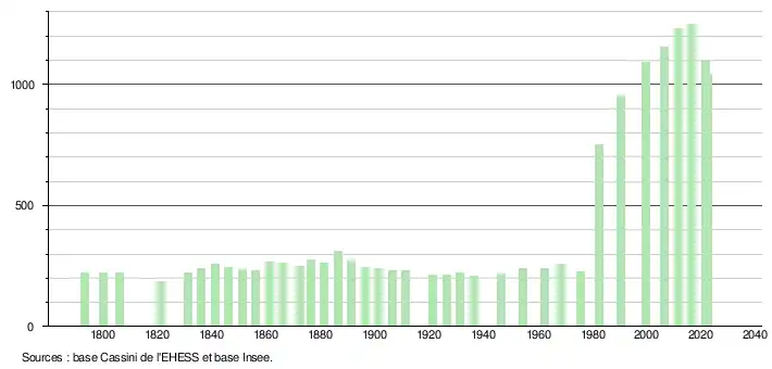 - ↑ Fiches Insee - Populations de référence de la commune pour les années 2006, 2007, 2008, 2009, 2010, 2011, 2012, 2013, 2014, 2015, 2016, 2017, 2018, 2019, 2020, 2021 et 2022.