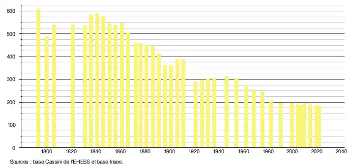 - ↑ Fiches Insee - Populations de référence de la commune pour les années 2006, 2007, 2008, 2009, 2010, 2011, 2012, 2013, 2014, 2015, 2016, 2017, 2018, 2019, 2020 et 2021.