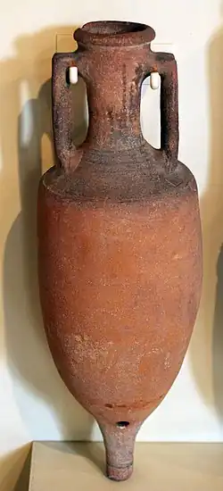 Pour les transports sur de plus grandes distances, ou pour les vins de qualité, le récipient est l'amphore. Certaines épaves maritimes examinées ont montré que le transport du vin était fait avec des dolia.