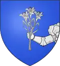 D'azur au dextrochère armé d'argent, sortant d'un nuage de même à senestre, et tenant trois lys au naturel.