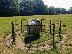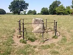 Coin des Ballons, Welham Green. Une pierre commémorant le bref atterrissage du premier vol en ballon (à hydrogène) en Angleterre.