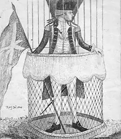 - ↑ Giaimo, « The Most Inspiring Hot Air Balloon Ride Ever Vincenzo Lunardi's first flight over London featured two caged pigeons, an airsick cat, and a lot of solo drinking », Atlas Obscura, (consulté le ).