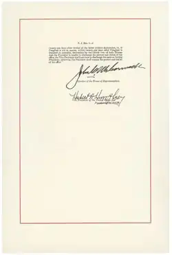 Afin de ne plus reproduire ces schémas, jugés dangereux pour la sécurité du pays, il apparaît que réviser le texte est nécessaire. Les problèmes de santé d'Eisenhower, la guerre froide mais surtout l'assassinat du président Kennedy en 1963 ont poussé à approfondir les travaux. L'amendement est adopté par le Congrès en juillet 1965[2]. Le XXVe amendement est ratifié le après son adoption par 38 États[1].