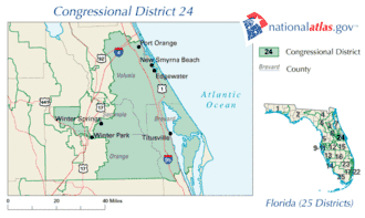 De 2003 à 2012, le 24e district a été créé après le recensement américain de 2000 et comprenait des parties du comté de Brevard (y compris Titusville) et des parties des comtés d'Orange, Seminole et Volusia. Le district englobait Port Orange, Winter Park, Edgewater et New Smyrna Beach. La majeure partie de ce district constitue désormais le 7e district, tandis que l'actuel 24e couvre la majeure partie de ce qui était le 17e district de 1993 à 2013.