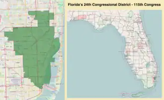 La 24e district congressionnel de Floride est un district situé dans le sud-est de la Floride. Il a été redessiné après le recensement américain de 2020. Ce district comprend des parties de Miami au nord de la Florida State Road 112, y compris Little Haiti, ainsi que Brownsville, Biscayne Park, North Miami, Miami Gardens et Opa Locka, ainsi que les communautés du sud du comté de Broward de Pembroke Park, West Park et parties de Miramar. Dans le cycle de redécoupage de 2020, le district a été dessiné pour inclure des parties des îles-barrières au nord-est de Miami, notamment Miami Beach et Surfside, tandis que tout Hollywood est devenu une partie du nouveau 25e district sous le nom de Country Club et une partie de Miami, dont Allapattah et Wynwood, fait partie du nouveau 26e district.