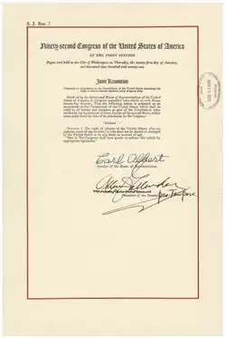 Le XXVIe amendement de la Constitution des États-Unis permet aux citoyens américains âgés d'au moins 18 ans de voter. Il est adopté le .
