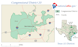 Le 20e district est fortement Démocrate. Il n'a jamais envoyé de Républicain au Congrès et n'a pas soutenu un Républicain à la présidence depuis 1956. En 1972, c'était l'un des deux districts du Texas à voter pour George McGovern (l'autre étant le 18e district de Houston). En 1984, cette circonscription a donné à Walter Mondale 59 % de ses voix.
