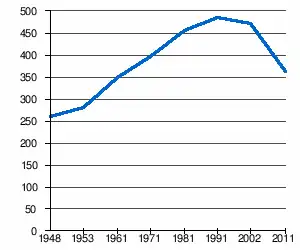 | 261 | 280 | 349 | 397 | 456 | 485 | 474[2] | 363[1] |
