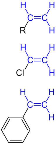 - ↑ (en) « vinylic groups », IUPAC, Compendium of Chemical Terminology [« Gold Book »], Oxford, Blackwell Scientific Publications, 1997, version corrigée en ligne : (2019-), 2e éd. (ISBN 0-9678550-9-8)