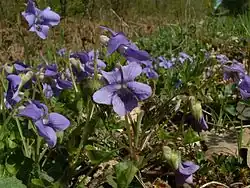 Une sous-espèce de la pensée sauvage, Viola tricolor hortensis, est également présente.