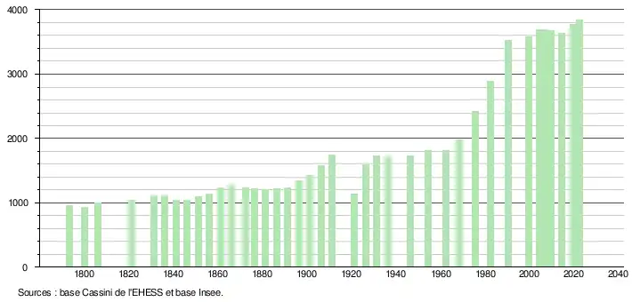 - ↑ Fiches Insee - Populations de référence de la commune pour les années 2006, 2007, 2008, 2009, 2010, 2011, 2012, 2013, 2014, 2015, 2016, 2017, 2018, 2019, 2020, 2021 et 2022.