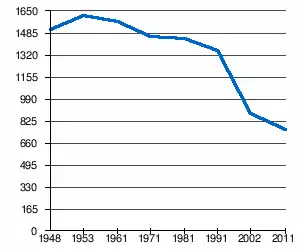 - 1 2 (sr + en) « Livre 20 : Vue d'ensemble comparative de la population en 1948, 1953, 1961, 1971, 1981, 1991, 2002 et 2011, données par localités) » [PDF], pages du recensement de 2011 en Serbie - Institut de statistique de la république de Serbie, (consulté le )