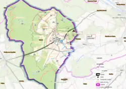 - ↑ Les ruisseaux intermittents sont représentés en traits pointillés.