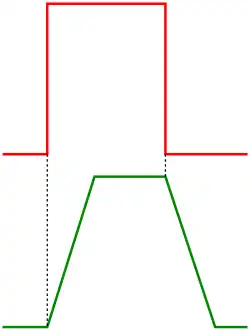 La vitesse de balayage (ou Slew rate) représente la vitesse de variation maximale que peut reproduire un amplificateur ; cette quantité conditionne donc la pente maximale que l'amplificateur peut reproduire à sa sortie à partir d'un signal à son entrée. Comme présenté sur l'image ci-contre, la pente quasi-infinie d'un signal rectangulaire ne pourra être transmise et amplifiée que comme une pente finie, et le signal de sortie sera trapézoïdal.