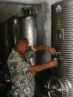 Foulage ou pressurage sont effectués rapidement pour éviter toute contamination microbienne. Le moût est ensuite mis à fermenter en fûts dans la cave où la température reste fraîche même pendant les jours les plus chauds. Puis, le vin est fermenté pour une deuxième fois pour éliminer les bactéries restantes et réduire son acidité. Après la seconde fermentation, le vin est filtré et mis en barrique. Les vins blancs et rosés sont immédiatement filtrés après la première fermentation pour maintenir la fraîcheur et pour éviter la multiplication des bactéries. Ils restent en barrique jusqu'à l'embouteillage.