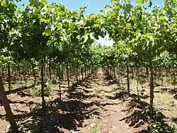 L'espalier fut introduit par des techniciens français venus au Chili pour fuir la crise du phylloxéra qui sévissait en Europe. La densité de plantation varie. Généralement située entre 2 x 1 m et 2.5 x 1,5 m, elle peut atteindre 3 x 2 m quand l'espalier est croisé. La taille diffère selon les variétés de raisin mais la plus usitée reste le cordon uni ou bilatéral. Vient ensuite la taille Guyot, généralement double, ou la taille en huasca, taille de type local dans laquelle la rame porteuse garde toute son extension, sans écimage[2].