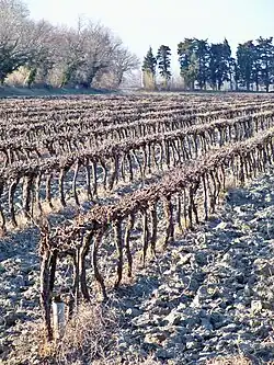 Si durant tout le Moyen Âge les vins provenant de ce terroir furent considérés à l'égal de ceux de Beaune, c'est qu'ils étaient produits avec un cépage exceptionnel le mourvèdre appelé alors « plant de Saint-Gilles »[2]. Le cépage vaccarèse ou brun argenté, qui est l'un des treize cépages de châteauneuf-du-pape est aussi connu sous les noms de Camarèse (à Chusclan), Camares du Gard, Madeleine, Vaccareso et Vakarez bekannt. Il est probablement originaire de la Camargue et des rives de l'étang de Vaccarès.