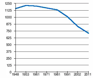 | 1 156 | 1 212 | 1 201 | 1 165 | 1 132 | 1 008 | 831[2] | 710[1] |