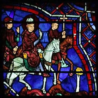 - 1 2 3 4 « Vie de saint Rémi »(Archive.org • Wikiwix • Archive.is • Google • Que faire ?), vitrail 12, « La cathédrale de Chartres »(Archive.org • Wikiwix • Archive.is • Google • Que faire ?).