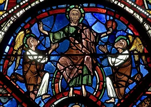 La verrière de Chartres marque une différence avec celles des cathédrales de Canterbury, Sens et Bourges[20] :