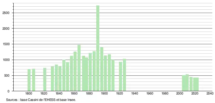 - ↑ Fiches Insee - Populations de référence de la commune pour les années 2006, 2007, 2008, 2009, 2010, 2011, 2012, 2013, 2014, 2015, 2016, 2017, 2018, 2019, 2020, 2021 et 2022.
