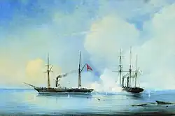 Le combat dura trois heures au bout desquelles le Pervaz-Bakhri fut contraint de baisser le pavillon pour se rendre. Les Russes eurent toutefois les plus grandes difficultés de surveillance à ramener leur « trophée » jusqu'à Sébastopol. Le navire turc fut remis en travaux et entra dans la flotte de la mer Noire sous le nouveau nom de Kornilov[2]. Après cette victoire Boutakov fut promu au grade de capitaine de 2e rang et décoré de l'ordre impérial et militaire de Saint-Georges de 4e classe. En route de Sébastopol à Yalta le 17 octobre 1853, le vapeur Enikale heurte un rocher au large du cap Kirkenes et échoue au large d'Aloupka. C'est le Vladimir qui est envoyé sur le lieu de l'accident avec plongeurs et gréeurs pour le sauvetage et les réparations[3].
