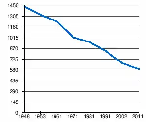 - 1 2 (sr + en) « Livre 20 : Vue d'ensemble comparative de la population en 1948, 1953, 1961, 1971, 1981, 1991, 2002 et 2011, données par localités) » [PDF], pages du recensement de 2011 en Serbie - Institut de statistique de la république de Serbie, (consulté le )